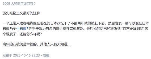 日本前首相石破茂正式卸任一个月之际,迎来了一波非比寻常的网络人气。11月22日,石破茂在X平台的个人账号上发布了两张风景照片,未作任何文字说明。截至26日发稿时,这条平平无奇的状态获得了1227万次浏览,7万点赞和2600多条回复,互动量超过了绝大多数他担任日本首相期间发布的重要消息。值得注意的是,其中不少互动来自中国网友,还有疑似“大V”。       石破茂发布的照片是阳光下的鸟取沙丘。当天,他回到故乡鸟取县参加另一个“战后80年”相关活动,照片可能由他本人拍摄,但没有准确说法。无论如何,两张风景照激起如此反响实属不可思议。一方面,不配文字的图片可以被任意解释,因此自带一种互联网迷因效果,可能是它得到传播的原因。有日本网友煞有介事地推测说:石破茂这是在暗示,日本将(因为高市早苗的错误涉台言论)沦为沙漠。不过,大多评论内容与沙丘无关。更多两国网友的留言内容是:石破茂,回来吧。       图为中日两国网友在石破茂发布风景照下的留言。截图自X       过去一个月中,石破茂在互联网出圈的直接原因是他对现任首相高市早苗涉台言论的几次批评,但不是全部原因。11月13日,石破茂在事件后首次发声,表示他不赞同高市发言,因为“历届日本政府一直避免就台海问题发表决定性表态”。11月23日,石破茂做客朝日电视台谈话节目,进一步解释了他的观点。他说:“自1972年中日邦交正常化以来,日本历届政府都在小心翼翼地维护对华关系。尽管偶尔难免情绪高涨,难免想说一些不该说的话,但最终都能谨慎处理。”他因此怀疑,如今的高市内阁,是否真的如她所说延续了日本政府的一贯立场。       2025年10月21日,石破内阁总辞职。图:日本首相官邸       表面上看,这些发言很难解释中国网友对他的好感。石破茂并不是第一个站出来反对高市涉台言论的日本前首相,他的发言也是其中最克制的,大多立足于外交的技术问题,即承认中日关系极为脆弱敏感;在这个前提之上,讨论日本政府应该如何遵守契约、管理危机。然而,正是这种务实的发言向中日两国同时传递出一种真诚,让人想起政治家的天职何在。23日同一档节目中,石破茂继续批评高市说:“外交场合不是用来过嘴瘾,也不是用来提升支持率的。相反,即便被选民骂得狗血淋头,也要为国家利益做应做之事,这才是我们一直接受的教育。”       中文互联网有一张知名的梗图,来自石破茂在今年10月获得“日本最佳眼镜佩戴者奖”这个奇特的奖项时的墨镜形象留影,图中配了一句话“你们怎么办,关我什么事”。这张图在日本也十分出圈,每次发在外网都会引来日本网友互动,体现了过去一个月中,中日两国网友“想念石破茂”的一体两面。       对日本网友而言,他们突然发现石破茂此前的许多政策和主张都是有道理的,至少与现在这个相当疯狂的政权相比。对于中国网友而言,他们对本届日本政府的种种失败十分关注,但没有那么痛切的焦虑。这种感觉借助前首相石破茂的形象化作了一种惋惜的冷眼旁观,仿佛在说:日本原本有机会走一条更体面的路,与周边国家发展出更好的关系,是你们亲手将这个首相挤了下去,现在看你们怎么办。       截图自NGA玩家社区       日本民众对石破茂的想念并不仅限于他对高市涉台言论的牵制。石破政权期间,外交方面,日本与美国之间的关税纠纷基本解决,与也比过去更加广阔。卸任时,他的“谈话”在战后80周年的重要节点,为日本政府坚持和平主义的良好国际形象留下了最后的贡献。内政和民生方面,石破政府的一度显现出成效,令民众看到了希望。打击自民党腐败问题方面,石破政权还未来得及出手,但无论如何,执政期间他本人保持了一贯的清廉乃至“社恐”的形象。军事和军费方面,日本也没有进一步无端扩张的迹象。在这些成果一夜之间化为泡影之际,日本民众在一番复盘后发现,石破政权并不是像它当初被指责的那样什么也没做。退一步说,即便真的什么也没做,也好过胡乱行事。       图为日本网友在石破茂发布风景照下的留言,大意是在现政权下感到不安,希望石破茂重新执政。截图自X       中国网友对石破茂相对信任的根源,依旧是他的“80周年谈话”,这在知乎和B站等以年轻用户为主的平台尤为显著。在“你们怎么办,关我什么事”之外,还有许多中文热梗来自那份谈话,如“石破茂的晚年是幸福的”,甚至“日本配不上石破茂”。       截图自知乎、BILIBILI石破茂相关内容热评       石破茂的“谈话”看上去相当晦涩,但知识分子型的人物能够在其中发现重新考据战前历史的分量,也能感受到一种在如今日本政坛核心人物中不太多见的清高。众所周知,石破茂在许多大问题上拥有自己的想法,但作为少数派政府的领导者,不得已打了安全牌,最终落了几面不讨好。然而,他也守住了一种底线。在卸任演说和其他多个场合,石破茂讲了许多未竟之志,承认自己作为日本首相还有很多不足,但他有信心自己从未向民粹主义低头;也嘱咐今后的日本政治家,绝不要容忍任何狭隘的民族主义或排外心理。       石破茂一直自称保守主义者,但这种保守与日本当下经常号称的“保守”并不相同。如今的政客经常将国家政策上的鹰派和社会政策上的排外主义粉饰为“保守”。然而,石破茂
